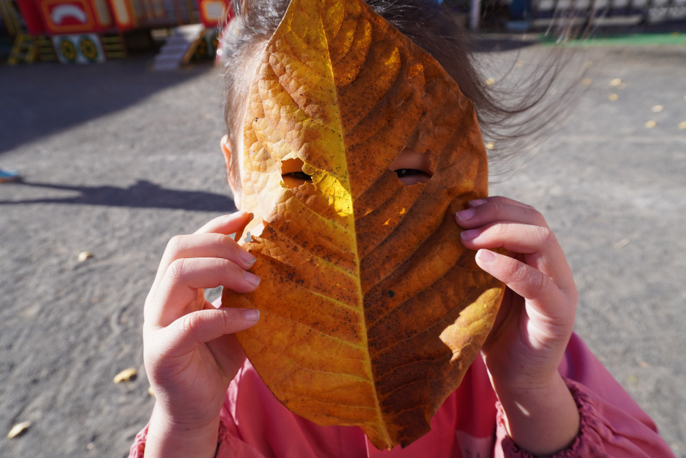 顔より大きい🍂葉っぱを見つけたよー!!